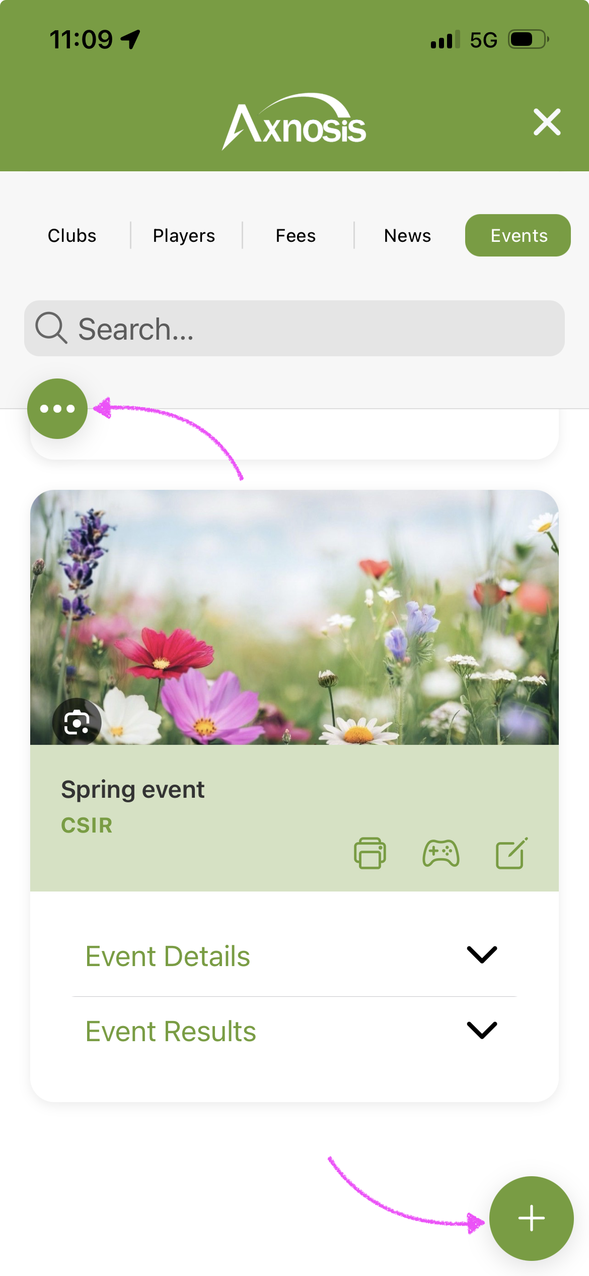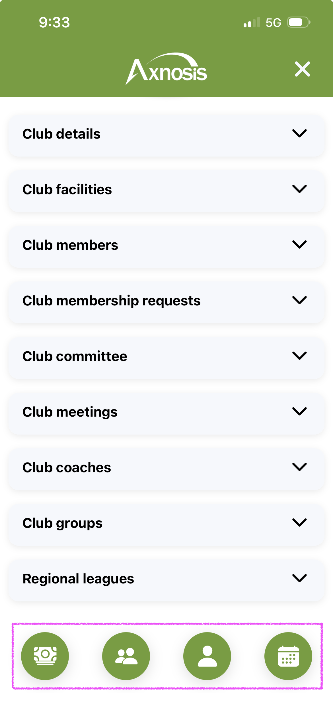 a. Players (club members) will use the icons at the bottom of the app (horizontal)