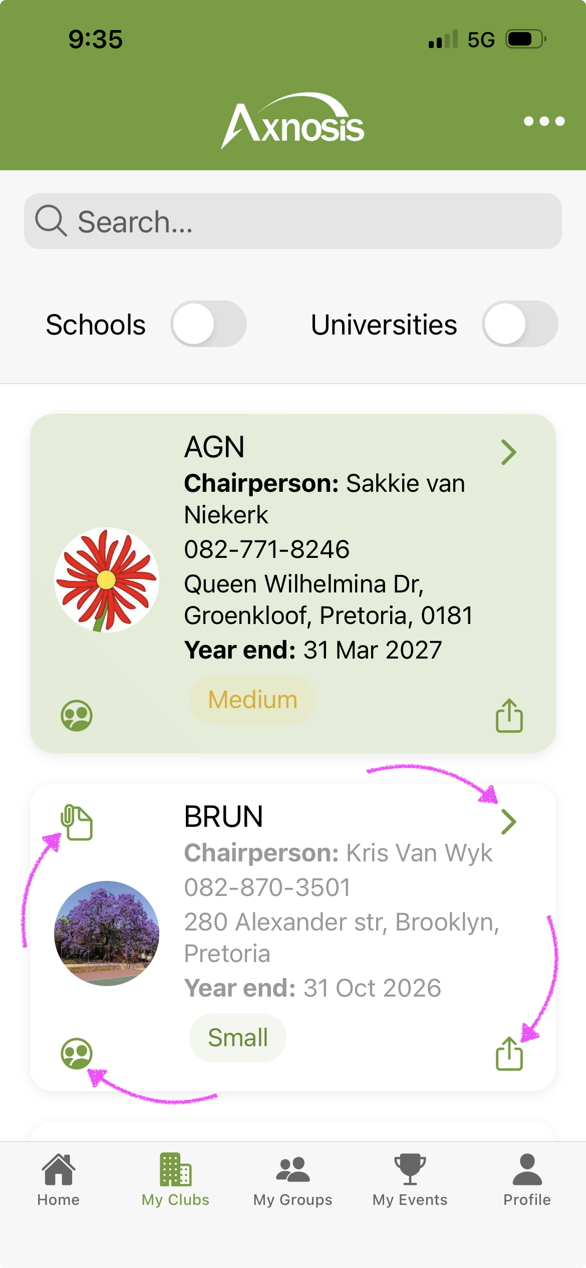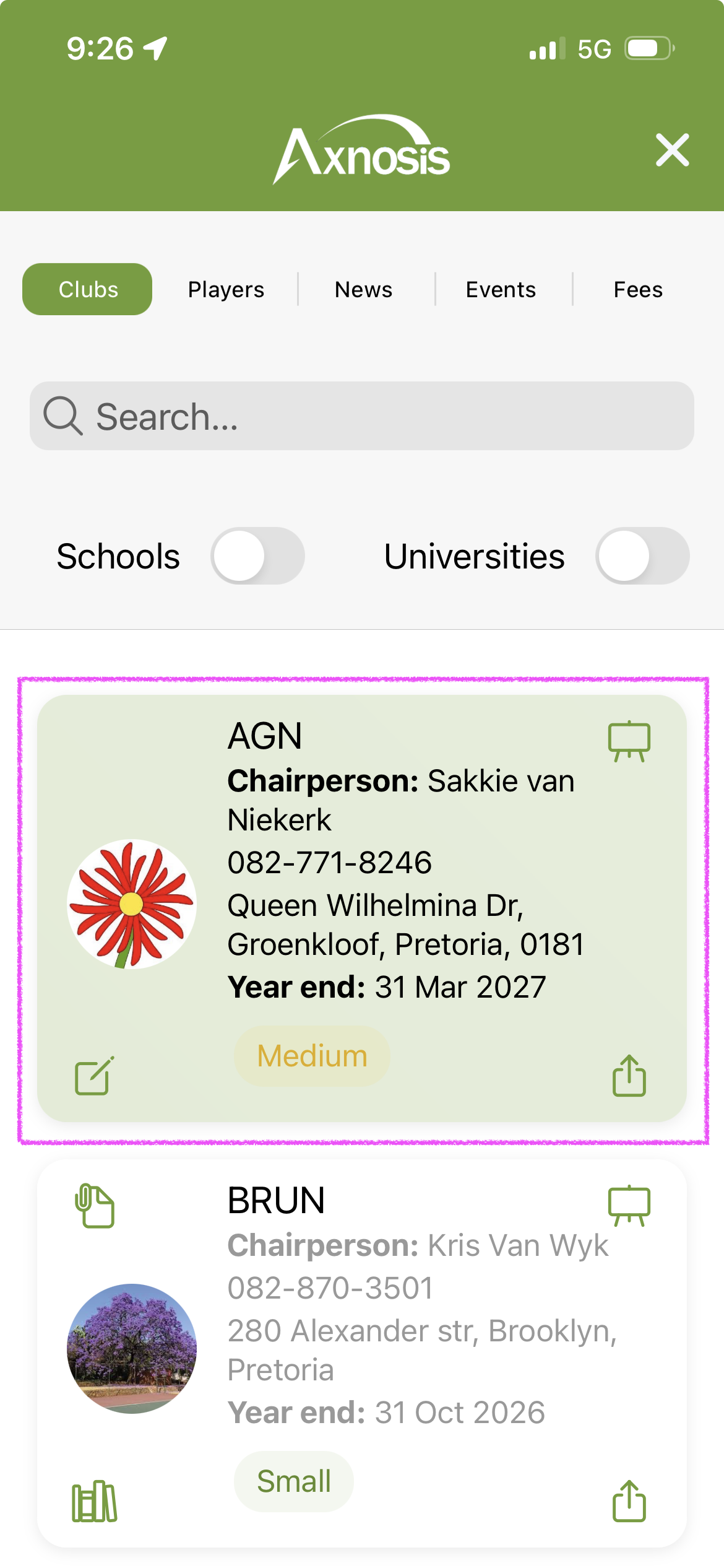 Identified in the app with a Medal icon, also known as the “badge of courage”. Club manager functions are available via the Vertical popover. |